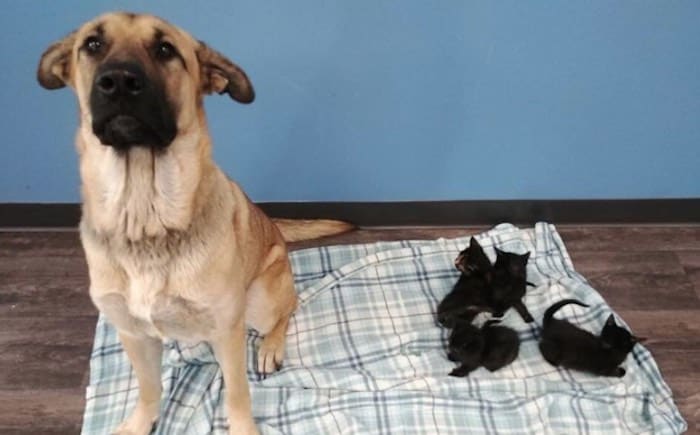 Aragon, a gentle dog, came across a box on his daily walk. He sniffed it, and he seemed really interested in what was in it. When his owner opened it, they found tiny kittens in it. The poor helpless kitties had been abandoned and left to fend for themselves. But Aragon was not going to leave them alone.