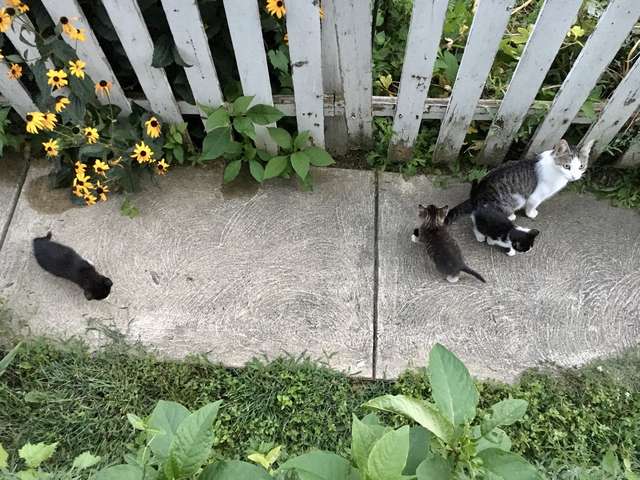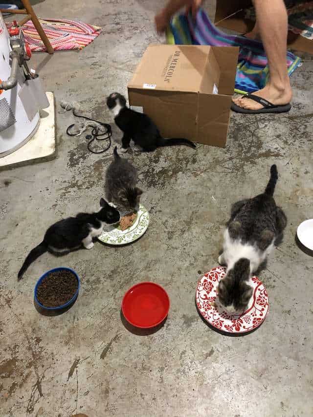 … and was shocked to see Athena and three little kittens, going for a stroll together. He quickly took a picture for his daughter, who is an avid animal lover, and she immediately offered to come over and help him catch them all and bring them inside.
