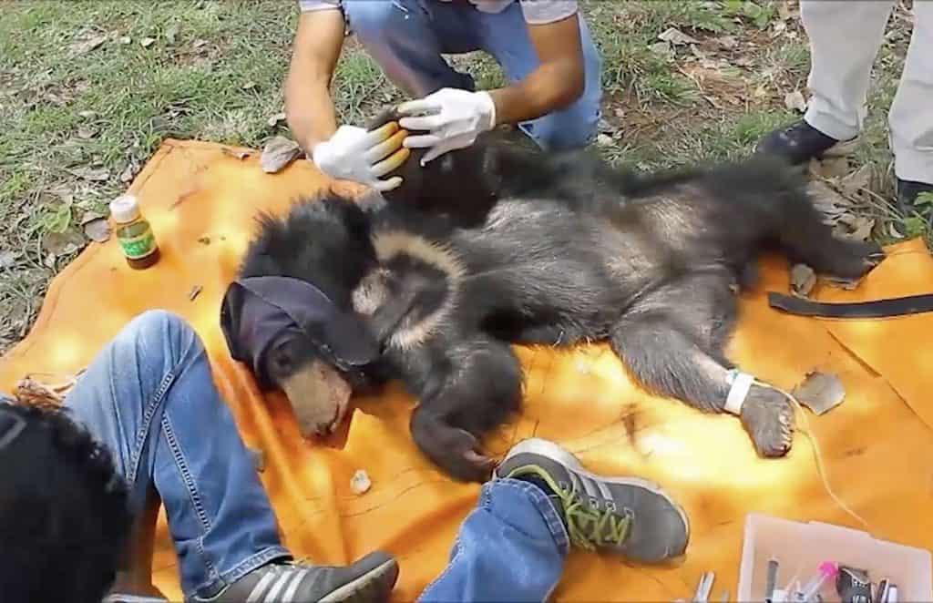 Thankfully, Dr. Arun A. Sha and his team arrived just in time to provide the sloth bear with a lifeline, and after successfully tranquilizing the cub, the doctors got to work nursing the bear’s wounds.