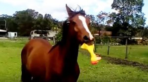 Horse Gets Hold Of Yellow Rubber Chicken – His Hilarious Antics Will Make Your Day