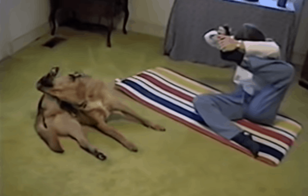 This is one of the best videos of a dog trying some crazy yoga moves together with his human mommy. The best thing about it is that the poor woman struggles to even lift her leg half way to the desired position while the dog does it with an incredible ease.
