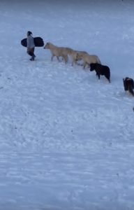 At one moment, Grandma shouts out that the horses are playing “follow the leader” with her grandson. These beautiful creatures are having so much fun in the snow and they are marvelous to watch in the video below.