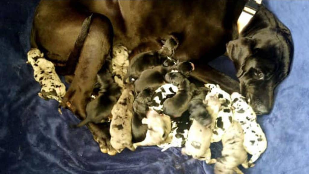 The average litter size of a Great Dane is 10 puppies, 13 is already considered large. However, the Great Dane you’re about to meet, however, recently defied all expectations.