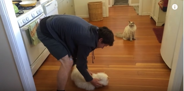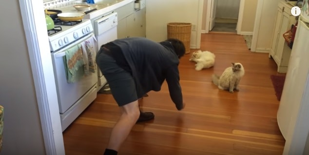 This video uploaded by Richard and Buttercup shows, how much Richard loves sliding on the floor. He comes again and again to his owner to make him slide, this simply means he enjoys doing that. I had actually never seen any cat do something like this. This is amusing and funny at the same time.