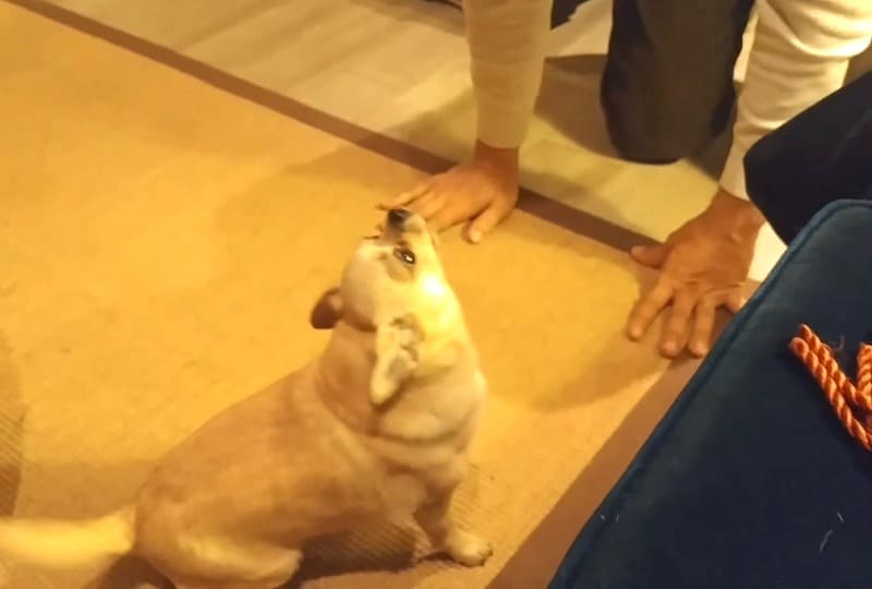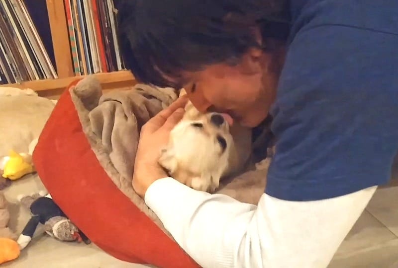 “Daddy’s home, Daddy’s home,” Michael says, which gets her even more excited to finally be reunited with him — good thing she didn’t pass out from her excitement. The dog yips and whines almost as if to say, “I can’t believe you’re home, Dad!”