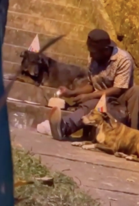 True happiness comes from the heart, not from material belongings, and this guy seems to be the happiest man alive. Even though he used to live on the streets nearly his entire life, without any possessions, he’s just far more fortunate than many of us. Recently he just showed the world what real happiness is after he celebrated one of his dogs’ birthdays in the sweetest way. Someone caught the beautiful moment on camera and it warms hearts all over the place!