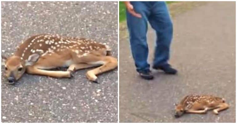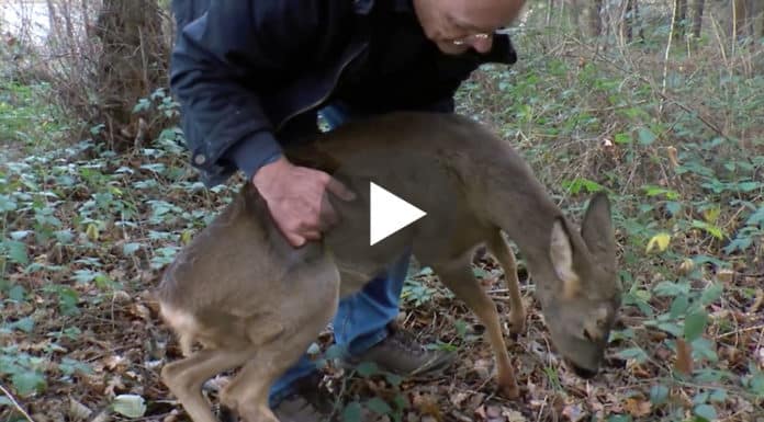In this touching video, a logger finds two deer fawns sitting quietly by the side of the road. Charmed, he investigates, speaking quietly to the animals as he approaches.