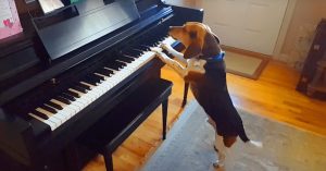 Sometimes, you just have to crank out a tune on the old family piano. Even when you’re a dog.