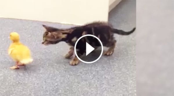 They expected the worst and immediately took the duckling away from her. They then realized that she had not hurt the duck since she had gently carried it.