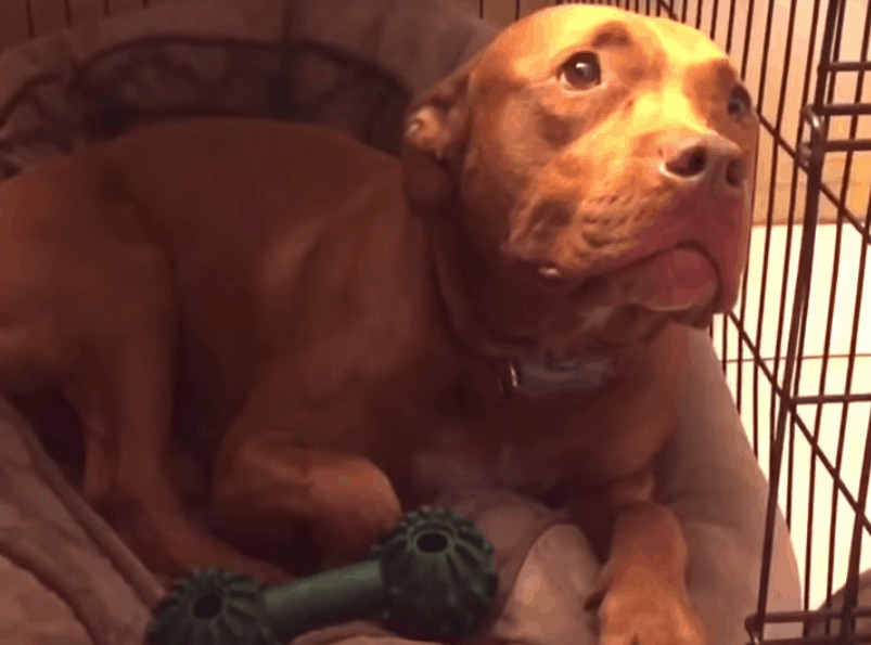 Watch this video as the sweet pit bull drifts off to sleep to the sweet sound of her owner’s singing!