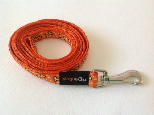 Now that we’ve taken care of business, let’s check out leashes. What’s special about the MagneClip leash is, obviously, the clip. Most leashes use a spring clip, which can be a real pain. This leash clip is magnetized so it’s easier on hands and fingernails. A simple solution to a pesky problem.