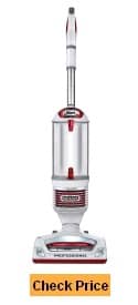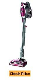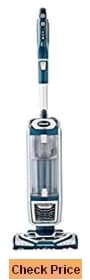 This vacuum has suction control to allow you to adjust the suction level, preventing problems like getting stuck on thick shag carpet with a Dyson because it sucks up the strands so tightly you can’t move the vacuum any further. The Shark does better on hardwood floors and tile than carpet. But it does a great job picking up pet hair and other messes on hard surfaces than Dyson.