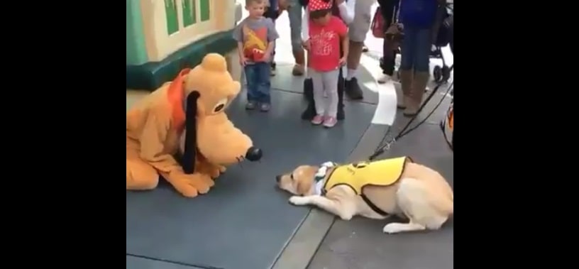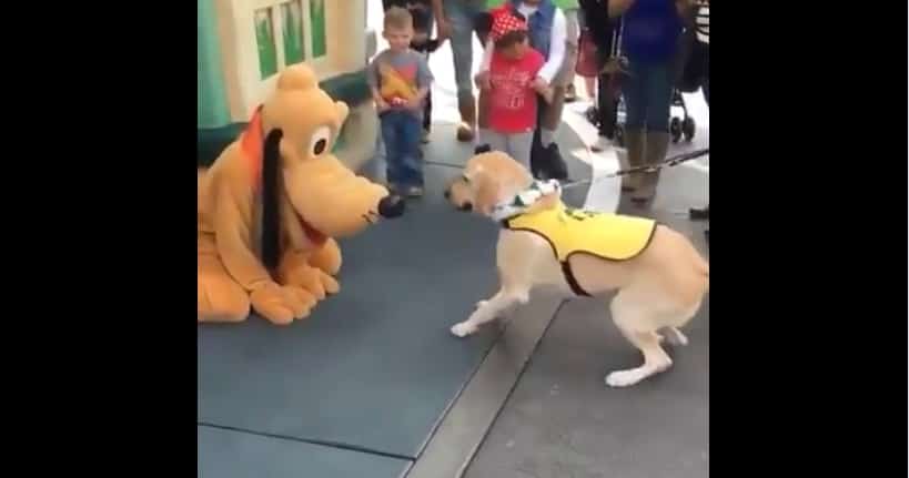 Disneyland may be the happiest place on Earth, but among all those kids, there was one dog who was super excited to meet his hero. That is Ace, a guide dog in training for Guide Dogs of America. Ace got the opportunity to meet Pluto during a visit to Disneyland, and his reaction, seen in the video below, is truly magical.