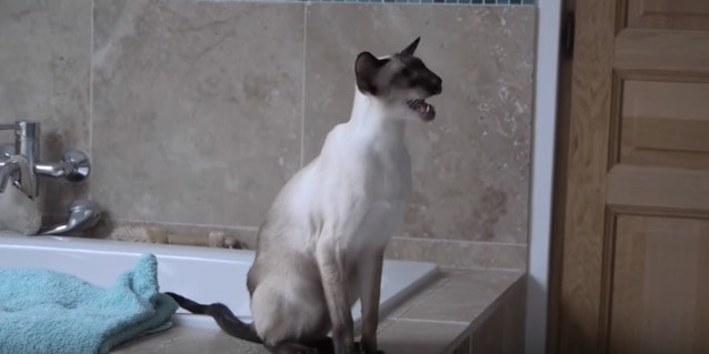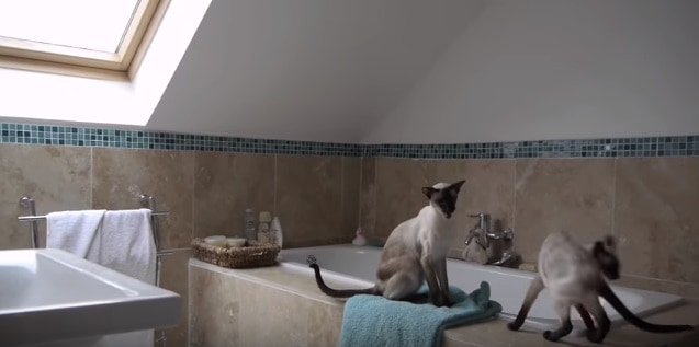 Take a look at these two Siamese cats! Every time their mom Sharron goes in for a bath, chaos breaks out in the house! They go bananas and they run in and start whining and crying. Poor Sharron’s alone time gets disrupted even before it starts!