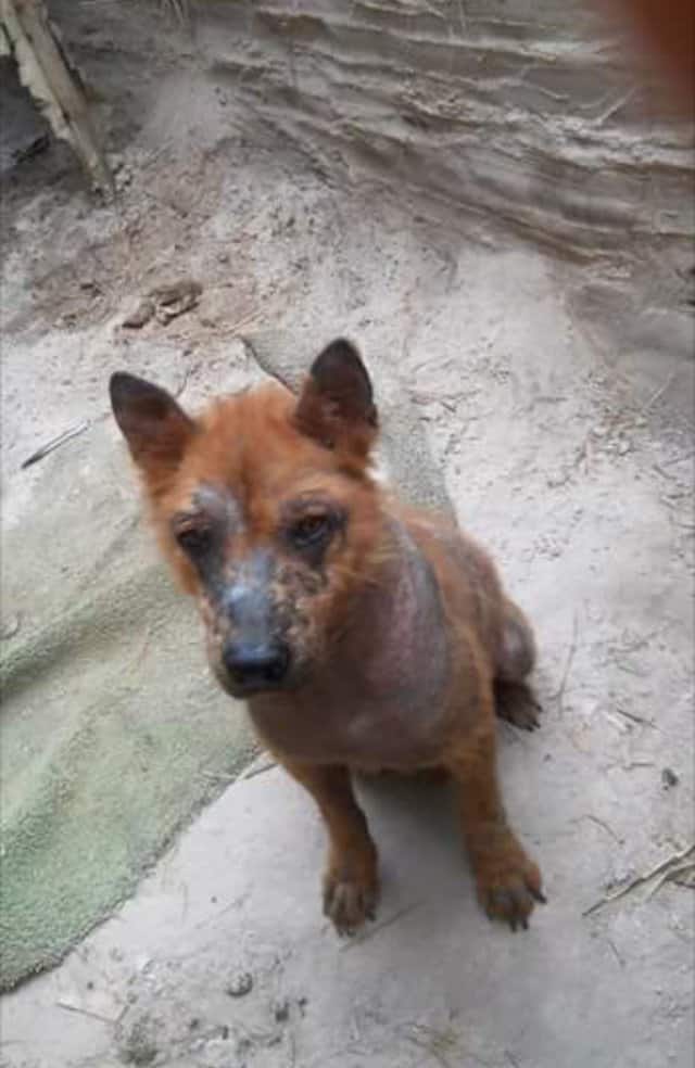 The kind-hearted woman was pained to see that the dog was suffering from severe mange, as well as other tick-borne infections which caused his skin to be even more inflamed. His pelvic bones were visible and sticking out of his weak 40-pound frame. It was half of his breed’s healthy weight range.