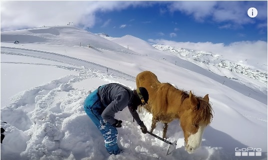 Turns out, the alleged rock in the snow was actually a live horse stuck deep into the snow. The two friends had to forget about their snowboarding plans so they could save the innocent animal. They spend a good moment of their day digging out the horse from the snow. They made a simple harness and took the horse down the mountain and into safety.