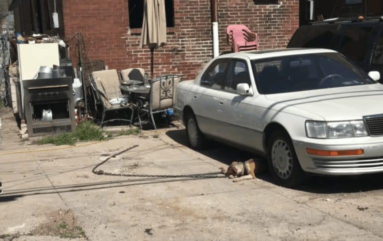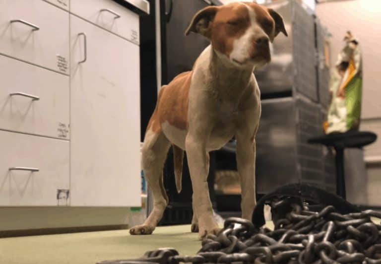 Rescuers from Stray Rescue of St. Louis found a medium-sized dog dragging around a 10-pound chain and couldn’t believe it. She barked at them, but they offered food. And they were able to lure her into the vehicle to take her to a place where she’d never be neglected again.