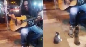 These kittens, who look like they were just a couple of months old, came in to support the man, telling others that his music was worth listening to!