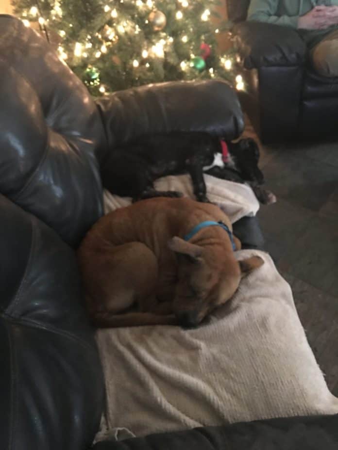 Once the two dogs arrived at their foster’s family place, they fell in love with their couch! It seemed like Bridget loved sleeping on it!