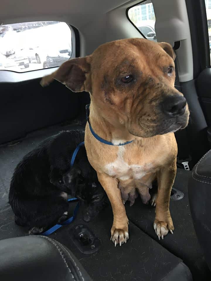 The condition of Bridget’s teeth was bad; she could have been chewing on a chain or another metal that caused her upper teeth to ground down to her gums. She is thought to have had multiple litters. She also could have been with dog fighters who are known to down the teeth of female dogs to protect the males from them. Whether their look had been caused by their being as bait animals or by any other reason, it was so heartbreaking.