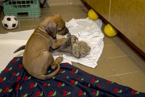 So, when Ruuxa was abandoned by his mother, the zoo staff stepped in. The zoo staff wanted to give the baby cheetah a companion since he had no siblings, they chose an 8-week old Rhodesian Ridgeback puppy named Raina for the job!
