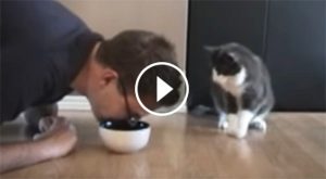 A few weeks later, the puppies have grown up a bit and are much more curious about Pipsqueak! Share these adorable encounters with your friends!