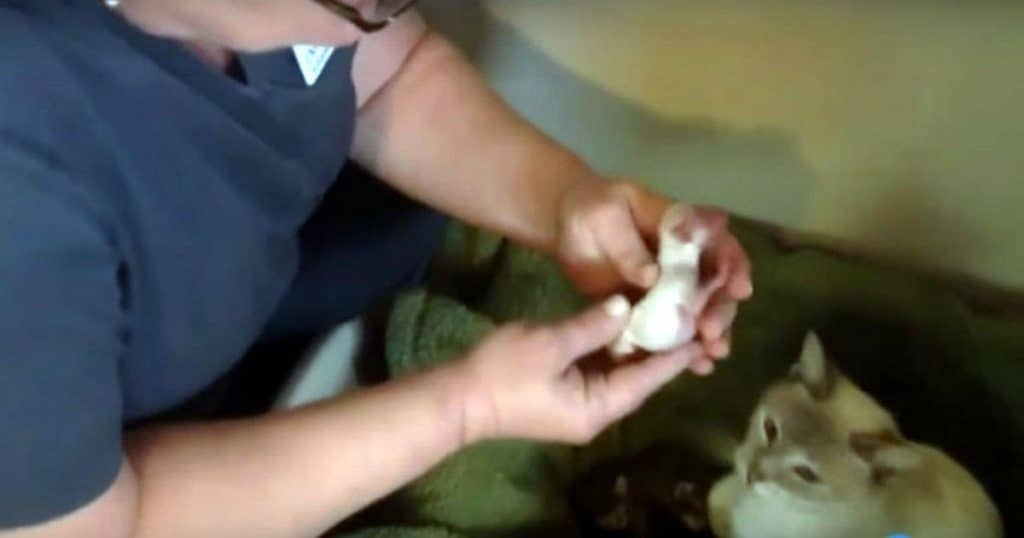 See how she reacts to the pups’ presence. You can see from the look in her eyes that she wished for this. She’s going to be one heck of a mama to these little dogs. That’s awesome!