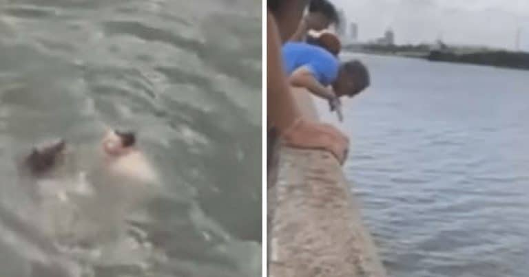 This was an amazing experience for the people on the boat, so they shared it online and many praised Cindy’s act. Take a look at the unusual rescue scene below.